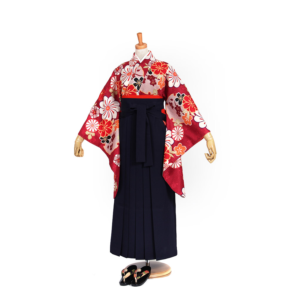 | セット内容 | 着物・袴・長襦袢・半幅帯・草履・巾着・着付け小物セット(前板・衿芯・伊達締め・腰ひも) *足袋肌着は別途レンタル / 販売品もあり |