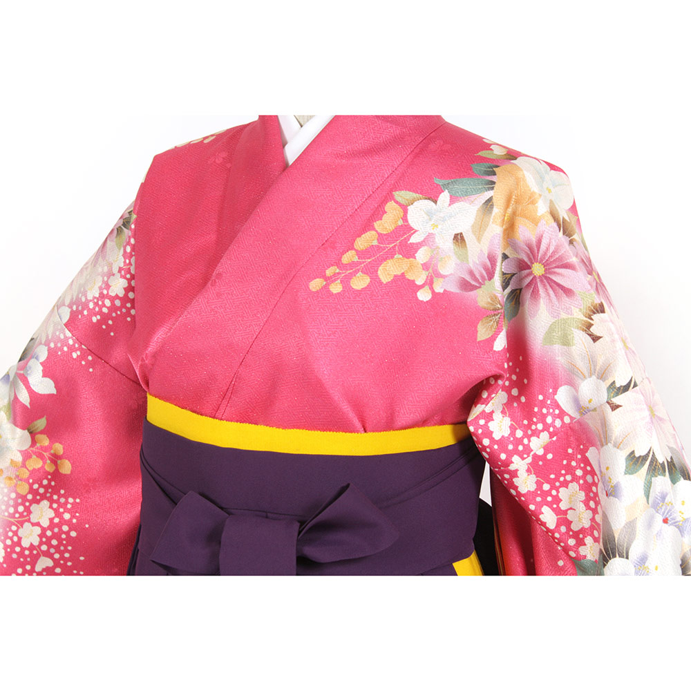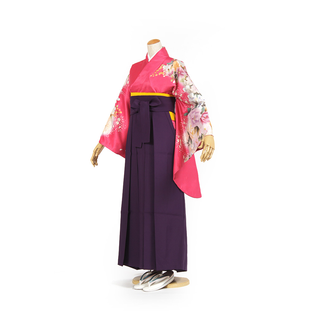 | セット内容 | 着物・袴・長襦袢・半幅帯・草履・巾着・着付け小物セット(前板・衿芯・伊達締め・腰ひも) *足袋肌着は別途レンタル / 販売品もあり |