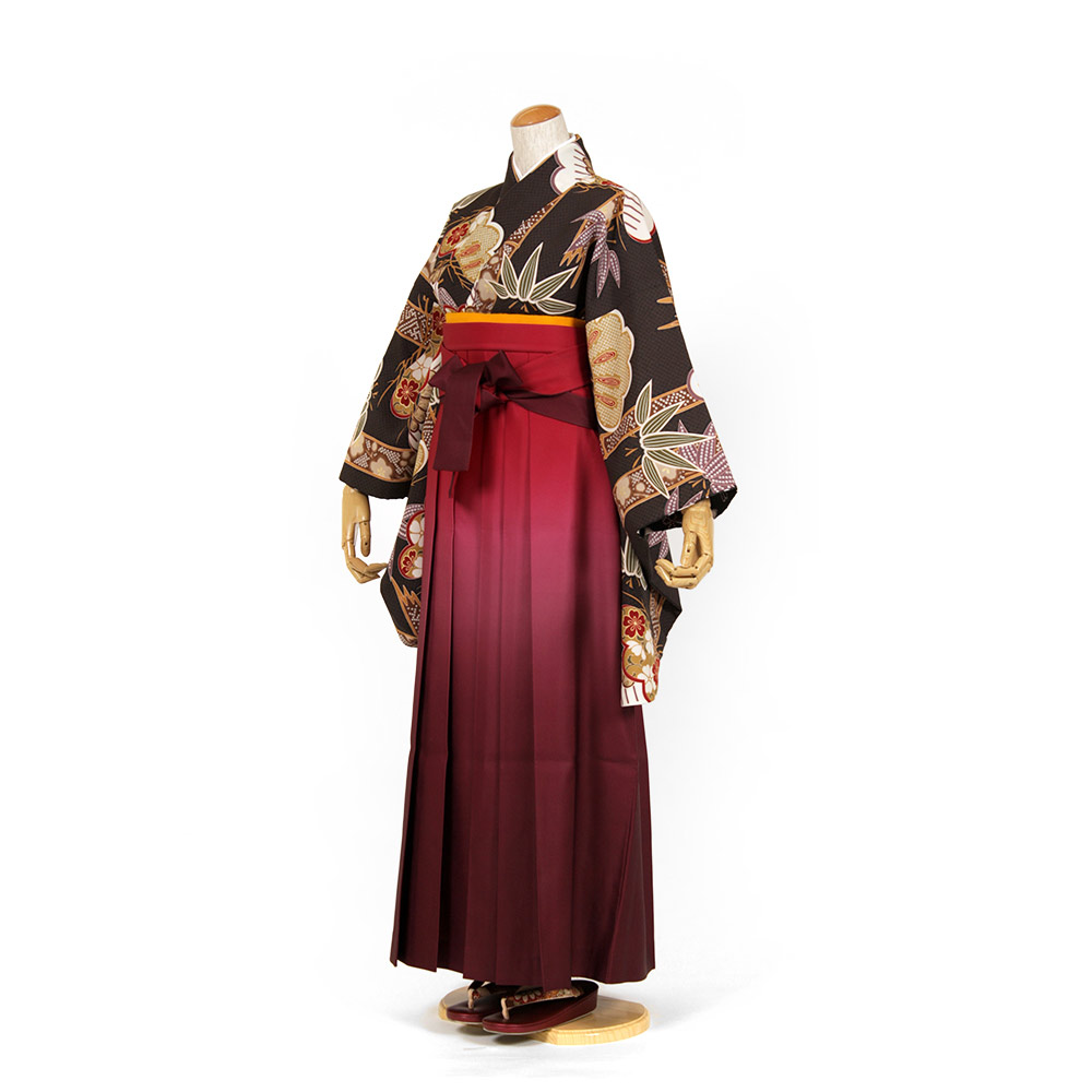 | セット内容 | 着物・袴・長襦袢・半幅帯・草履・巾着・着付け小物セット(前板・衿芯・伊達締め・腰ひも) *足袋肌着は別途レンタル / 販売品もあり |