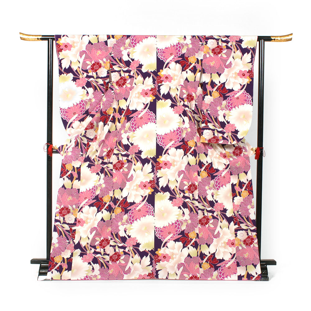 商品名 kf-130 紫地に菊,牡丹,桜