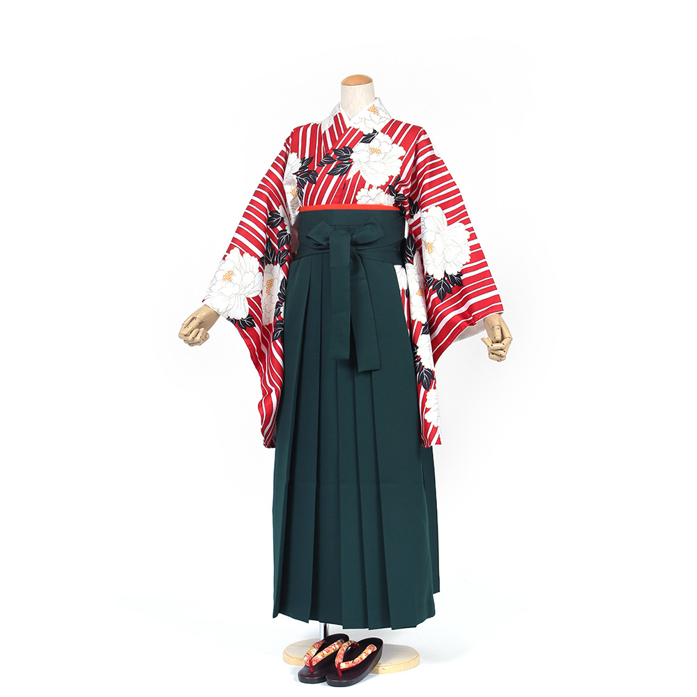 | セット内容 | 着物・袴・長襦袢・半幅帯・草履・巾着・着付け小物セット(前板・衿芯・伊達締め・腰ひも) *足袋肌着は別途レンタル / 販売品もあり |