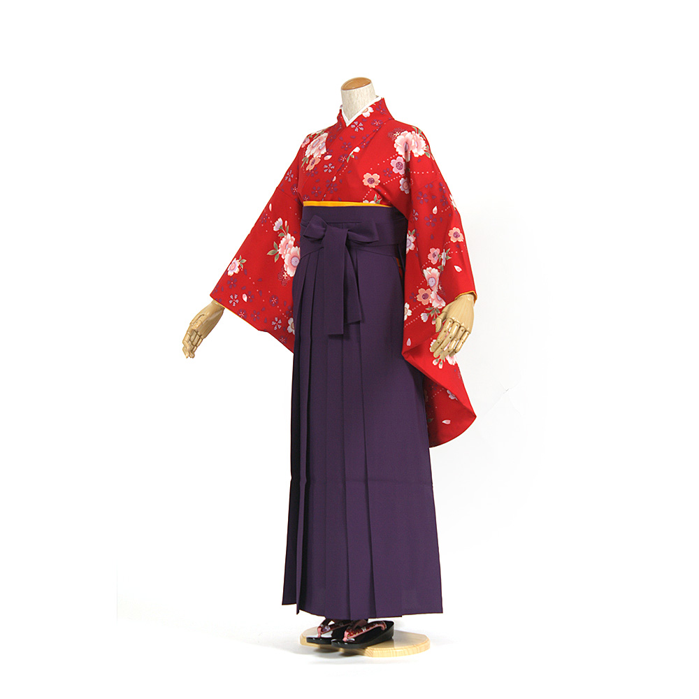 | セット内容 | 着物・袴・長襦袢・半幅帯・草履・巾着・足袋・着付け小物(前板・衿芯・伊達締・腰ひも) 特に何もご用意いただく必要はありませんが、着物用肌着の代わりに首元の開いた洋服用の下着・肌着をご用意ください。 *半巾帯は赤か黄となります。お選び頂けませんのでご了承下さい。 |