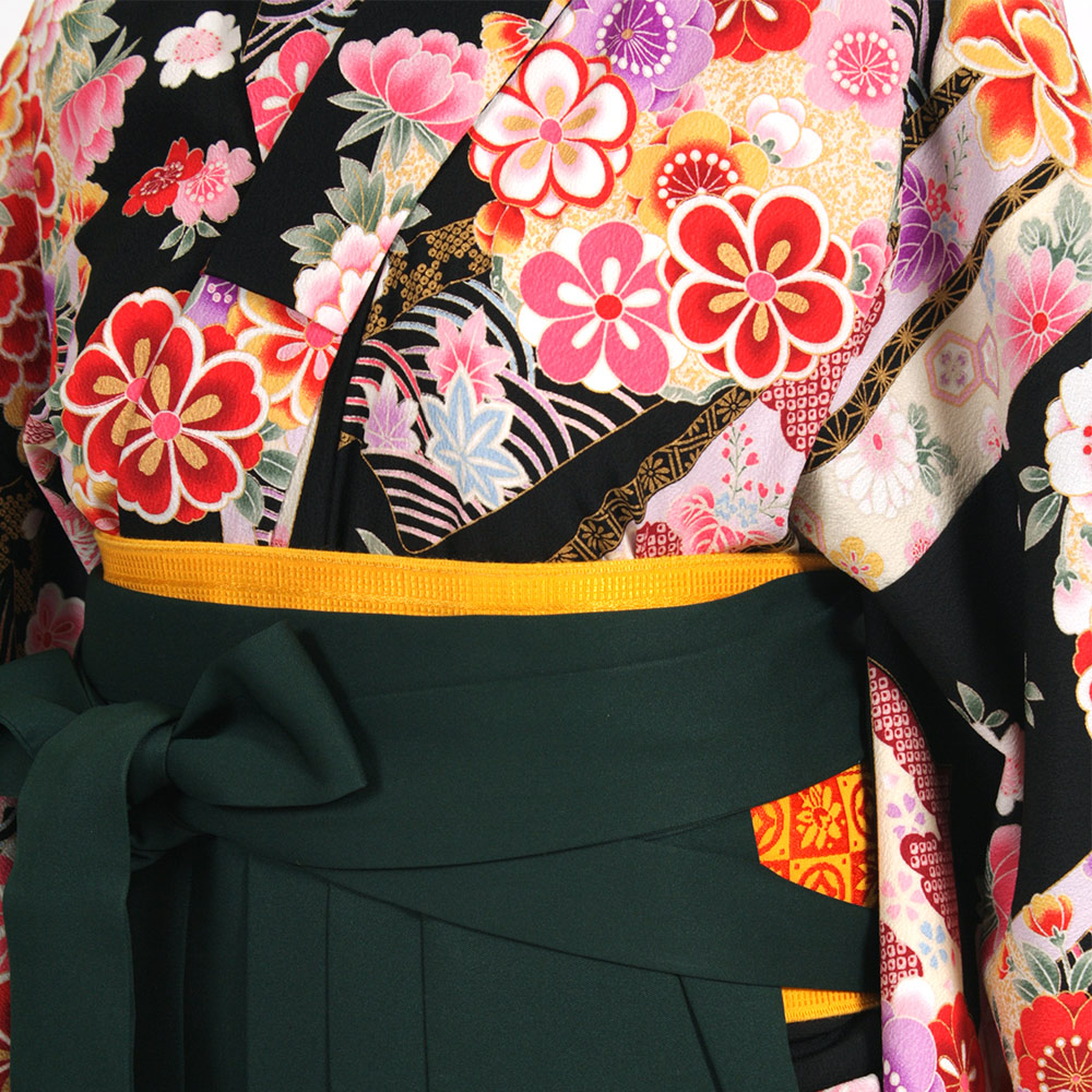 | セット内容 | 着物・袴・長襦袢・半幅帯・草履・巾着・足袋・着付け小物(前板・衿芯・伊達締・腰ひも) 特に何もご用意いただく必要はありませんが、着物用肌着の代わりに首元の開いた洋服用の下着・肌着をご用意ください。 *半巾帯は赤か黄となります。お選び頂けませんのでご了承下さい。 |