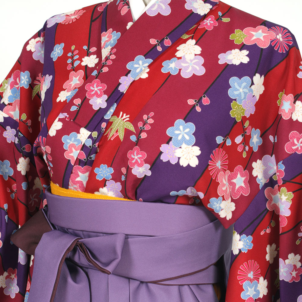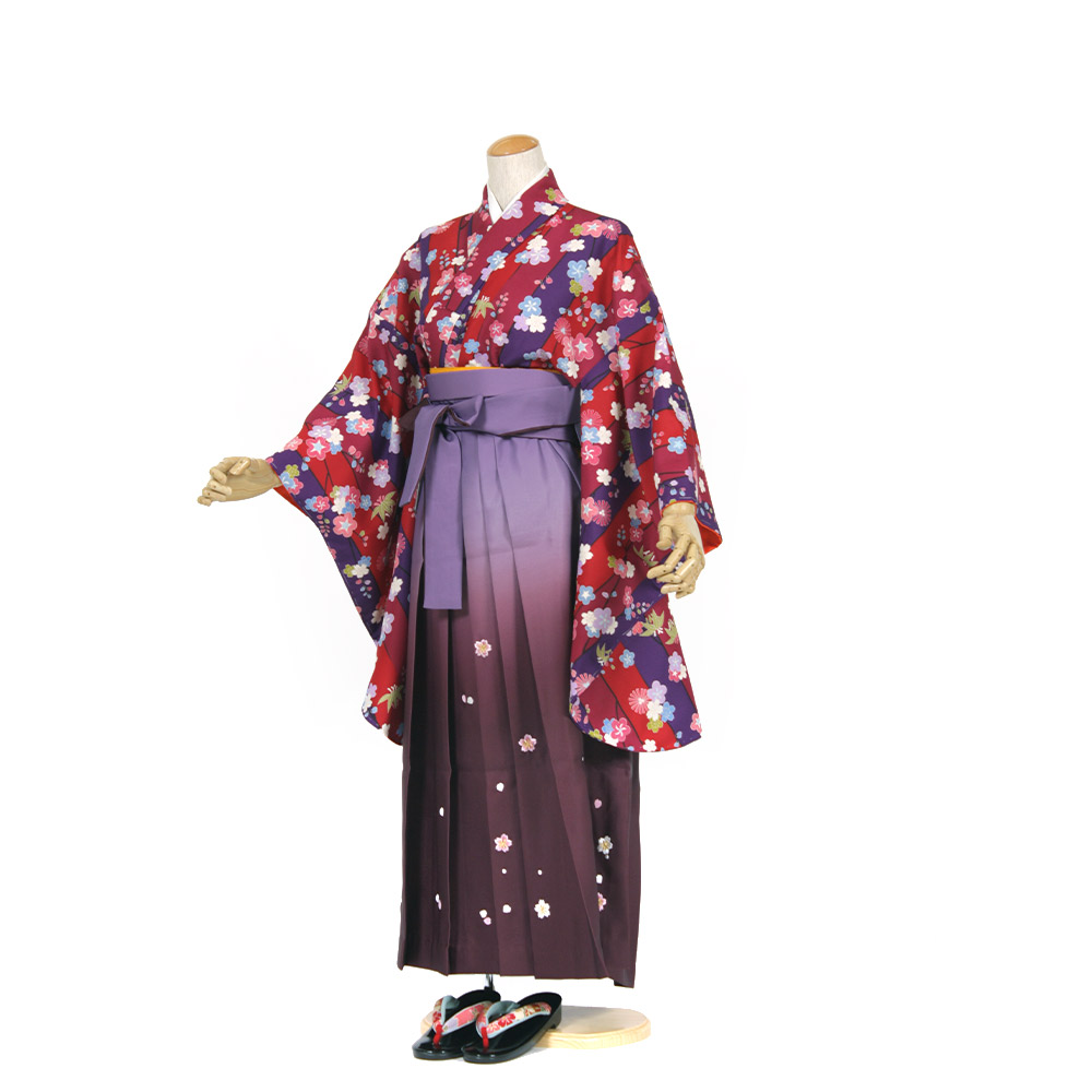 | セット内容 | 着物・袴・長襦袢・半幅帯・草履・巾着・足袋・着付け小物(前板・衿芯・伊達締・腰ひも) 特に何もご用意いただく必要はありませんが、着物用肌着の代わりに首元の開いた洋服用の下着・肌着をご用意ください。 *半巾帯は赤か黄となります。お選び頂けませんのでご了承下さい。 |