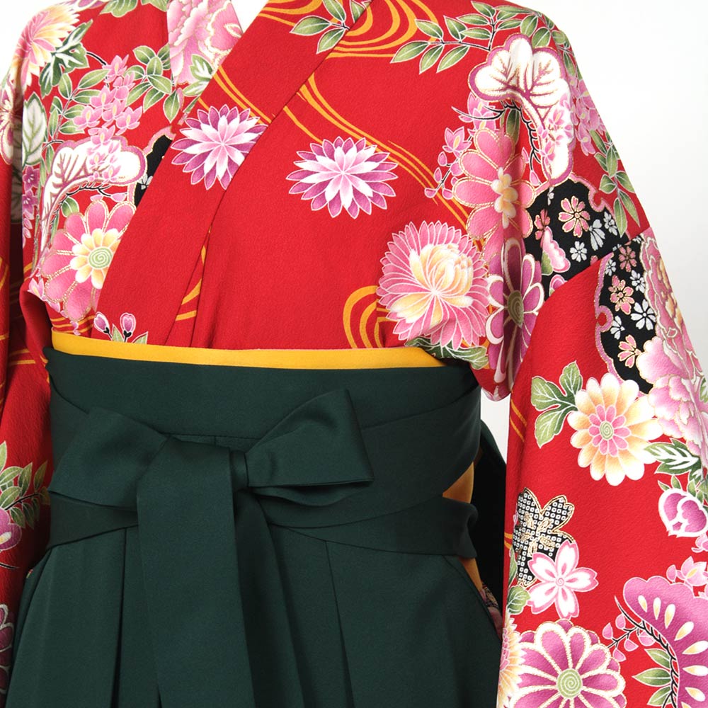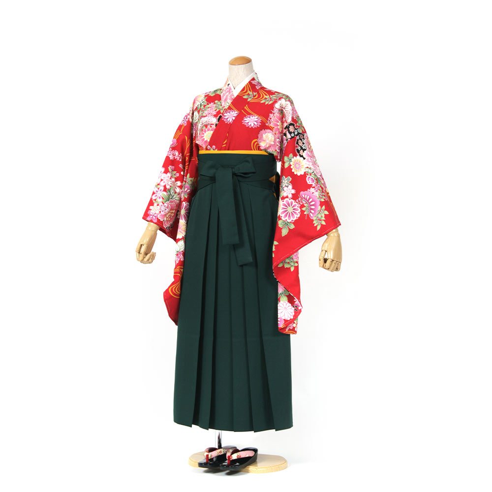 | セット内容 | 着物・袴・長襦袢・半幅帯・草履・巾着・足袋・着付け小物(前板・衿芯・伊達締・腰ひも) 特に何もご用意いただく必要はありませんが、着物用肌着の代わりに首元の開いた洋服用の下着・肌着をご用意ください。 *半巾帯は赤か黄となります。お選び頂けませんのでご了承下さい。 |