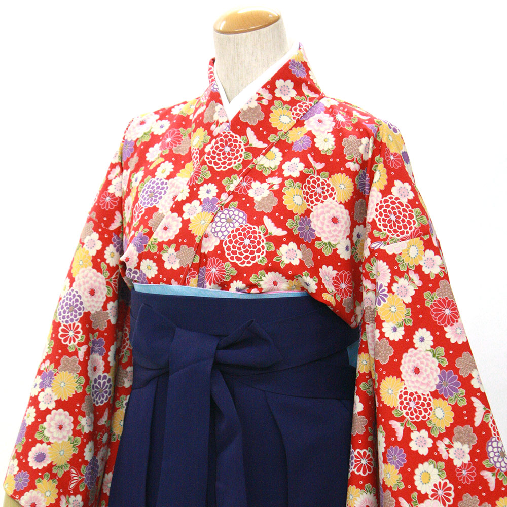 | セット内容 | 着物・袴・長襦袢・半幅帯・草履・巾着・足袋・着付け小物(前板・衿芯・伊達締・腰ひも) 特に何もご用意いただく必要はありませんが、着物用肌着の代わりに首元の開いた洋服用の下着・肌着をご用意ください。 *半巾帯は赤か黄となります。お選び頂けませんのでご了承下さい。 |