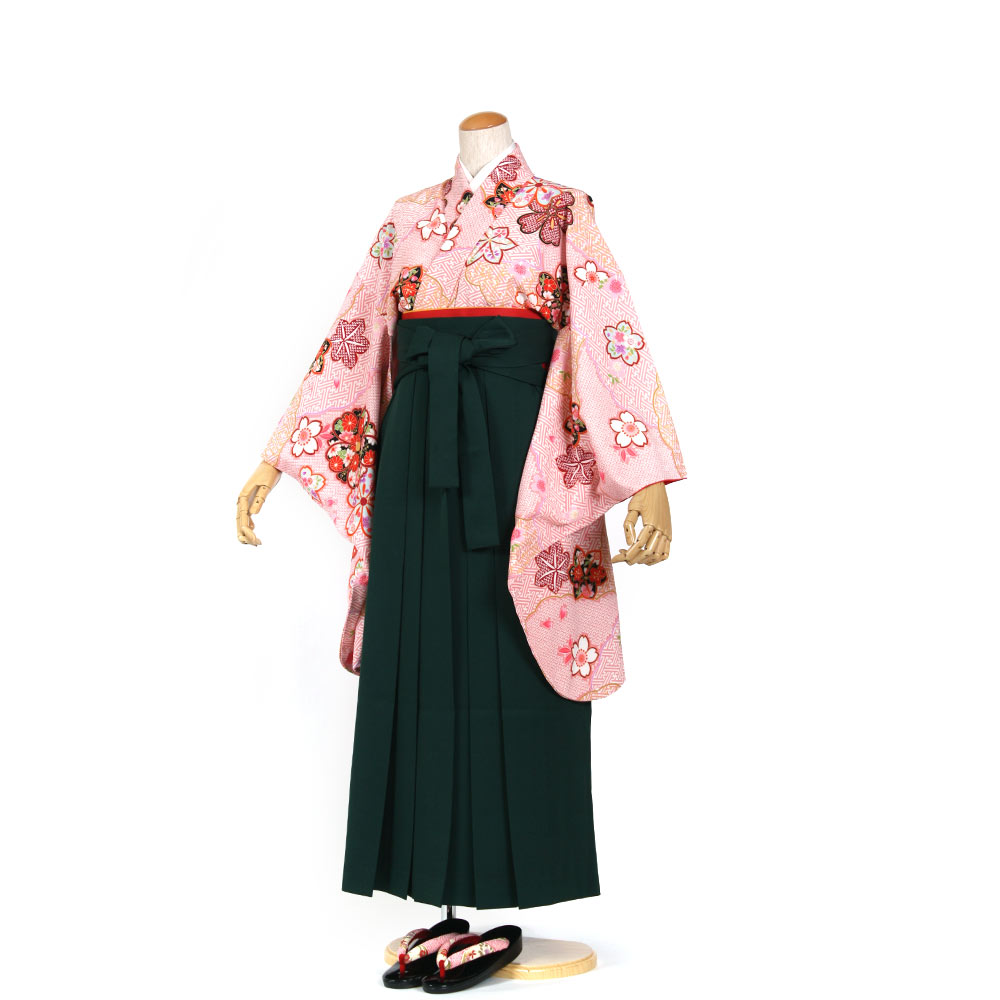 | セット内容 | 着物・袴・長襦袢・半幅帯・草履・巾着・足袋・着付け小物(前板・衿芯・伊達締・腰ひも) 特に何もご用意いただく必要はありませんが、着物用肌着の代わりに首元の開いた洋服用の下着・肌着をご用意ください。 *半巾帯は赤か黄となります。お選び頂けませんのでご了承下さい。 |