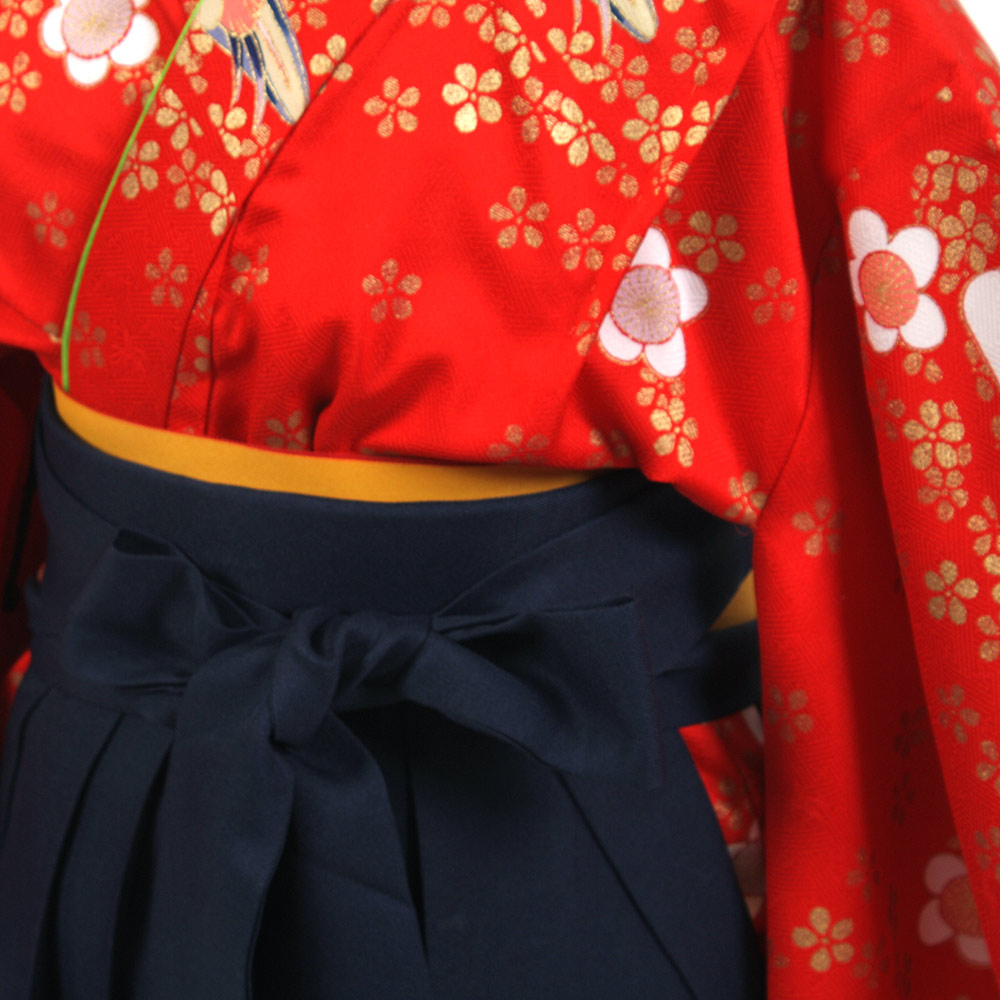 | セット内容 | (袴のタイプによって価格が変わります) 無地袴セット ¥15,000 + 消費税 柄・刺繍袴セット ¥17,000 + 消費税 着物・袴・長襦袢・袴下帯・草履・足袋・腰ひも 特に何もご用意いただく必要はありませんが、首元の開いた洋服用の下着をご用意ください。 サイズ調整は肩上げにて(サービス)対応します。 草履は予約状況やサイズにより写真のものとは異なる場合があります。 |