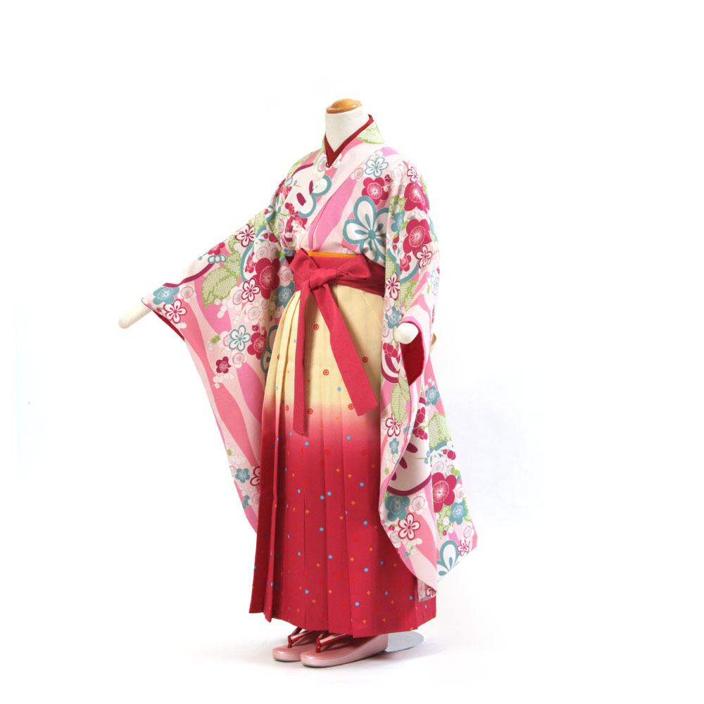 | セット内容 | (袴のタイプによって価格が変わります) 無地袴セット ¥25,000 + 消費税 柄・刺繍袴セット ¥27000 + 消費税 着物・袴・長襦袢・袴下帯・草履・足袋・腰ひも 特に何もご用意いただく必要はありませんが、首元の開いた洋服用の下着をご用意ください。 サイズ調整は肩上げにて(サービス)対応します。 草履は予約状況やサイズにより写真のものとは異なる場合があります。 |