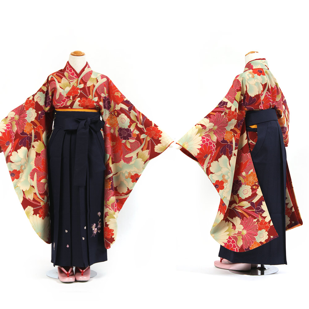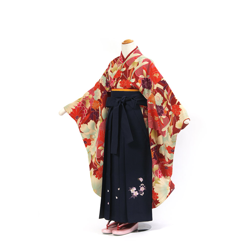 | セット内容 | (袴のタイプによって価格が変わります) 無地袴セット ¥20,000 + 消費税 柄・刺繍袴セット ¥22000 + 消費税 着物・袴・長襦袢・袴下帯・草履・足袋・腰ひも 特に何もご用意いただく必要はありませんが、首元の開いた洋服用の下着をご用意ください。 サイズ調整は肩上げにて(サービス)対応します。 草履は予約状況やサイズにより写真のものとは異なる場合があります。 |