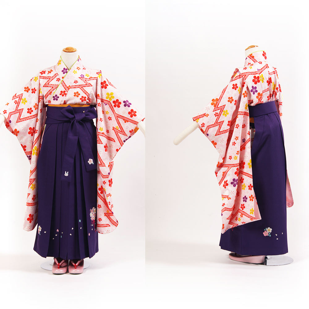 | セット内容 | (袴のタイプによって価格が変わります) 無地袴セット ¥15,000 + 消費税 柄・刺繍袴セット ¥17,000 + 消費税 着物・袴・長襦袢・袴下帯・草履・足袋・腰ひも 特に何もご用意いただく必要はありませんが、首元の開いた洋服用の下着をご用意ください。 サイズ調整は肩上げにて(サービス)対応します。 草履は予約状況やサイズにより写真のものとは異なる場合があります。 |