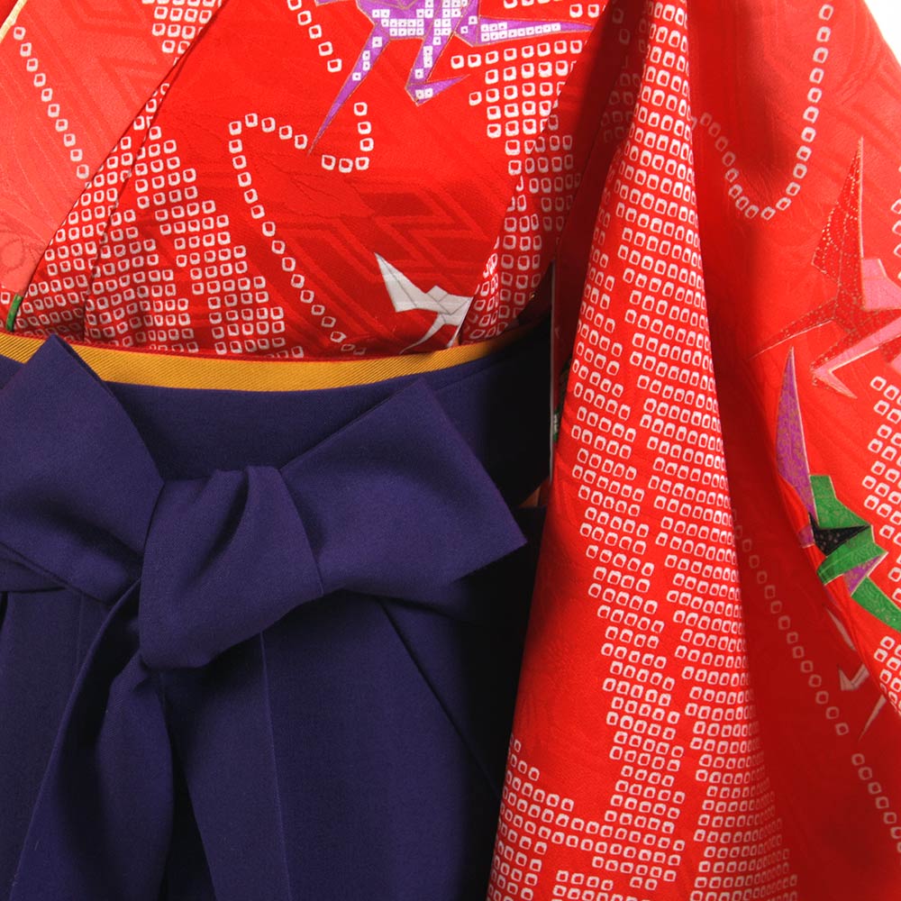 | セット内容 | (袴のタイプによって価格が変わります) 無地袴セット ¥15,000 + 消費税 柄・刺繍袴セット ¥17,000 + 消費税 着物・袴・長襦袢・袴下帯・草履・足袋・腰ひも 特に何もご用意いただく必要はありませんが、首元の開いた洋服用の下着をご用意ください。 サイズ調整は肩上げにて(サービス)対応します。 草履は予約状況やサイズにより写真のものとは異なる場合があります。 |