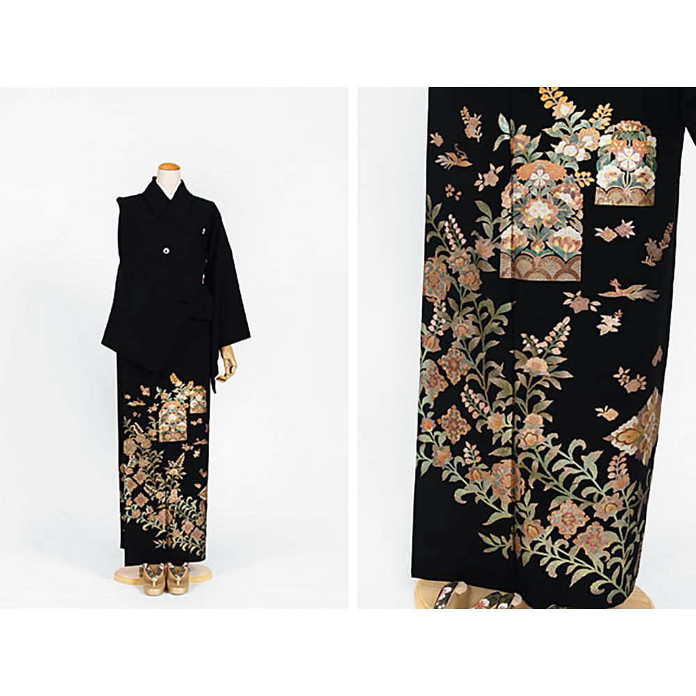| サイズ | ~168㎝位まで 身幅 ~15号位まで対応 サイズはスタッフにお尋ねください。 家紋・下り藤 |